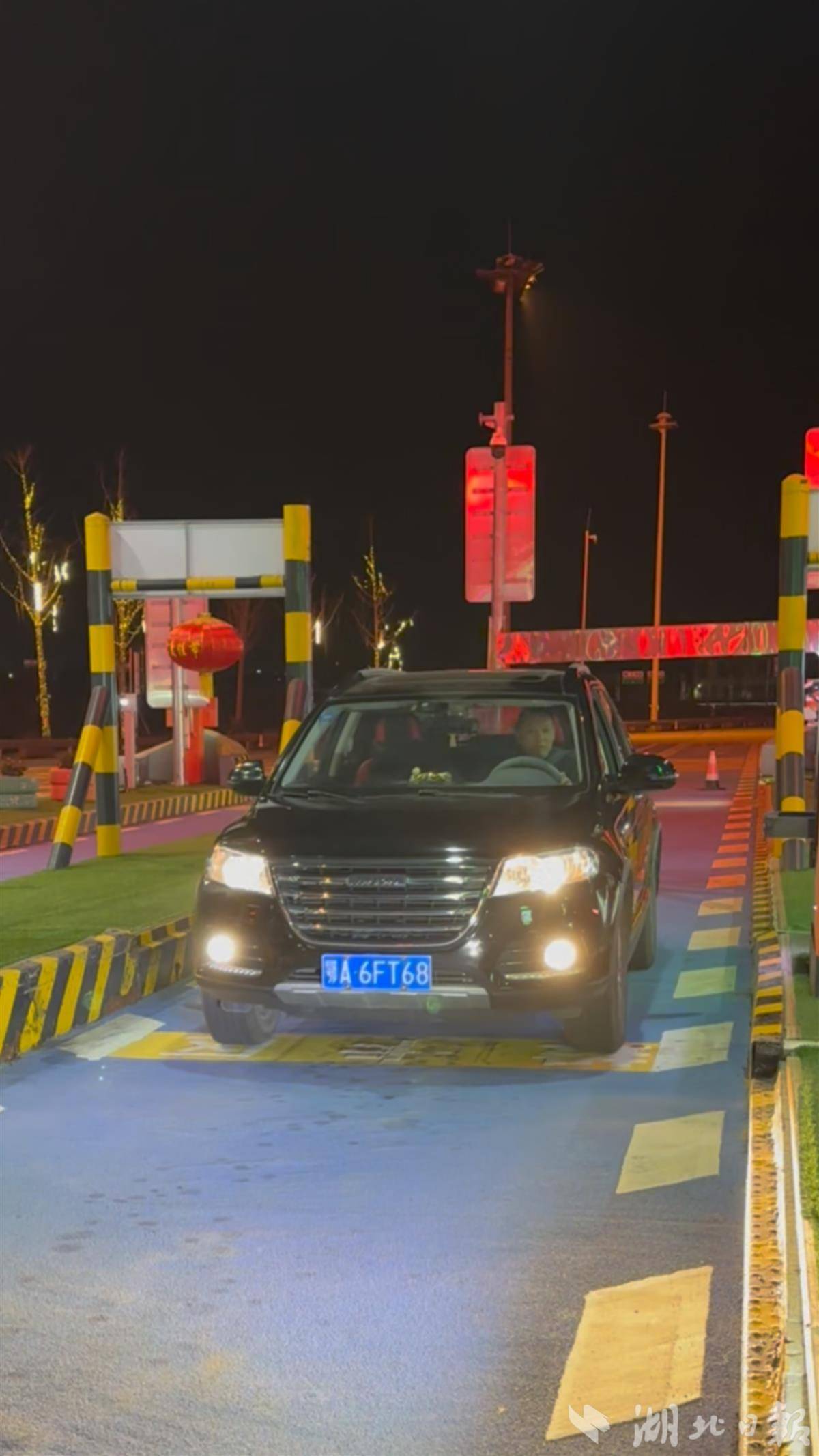 2月15日零点,在武汉西收费站,孝感的杨兵芳先生第一个下道,节省了70多元的通行费。(湖北日报全媒记者 任勇 戴辉 摄)