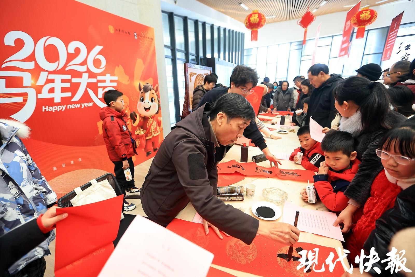 春运途中,书法家写春联、送福字成为最热门打卡点