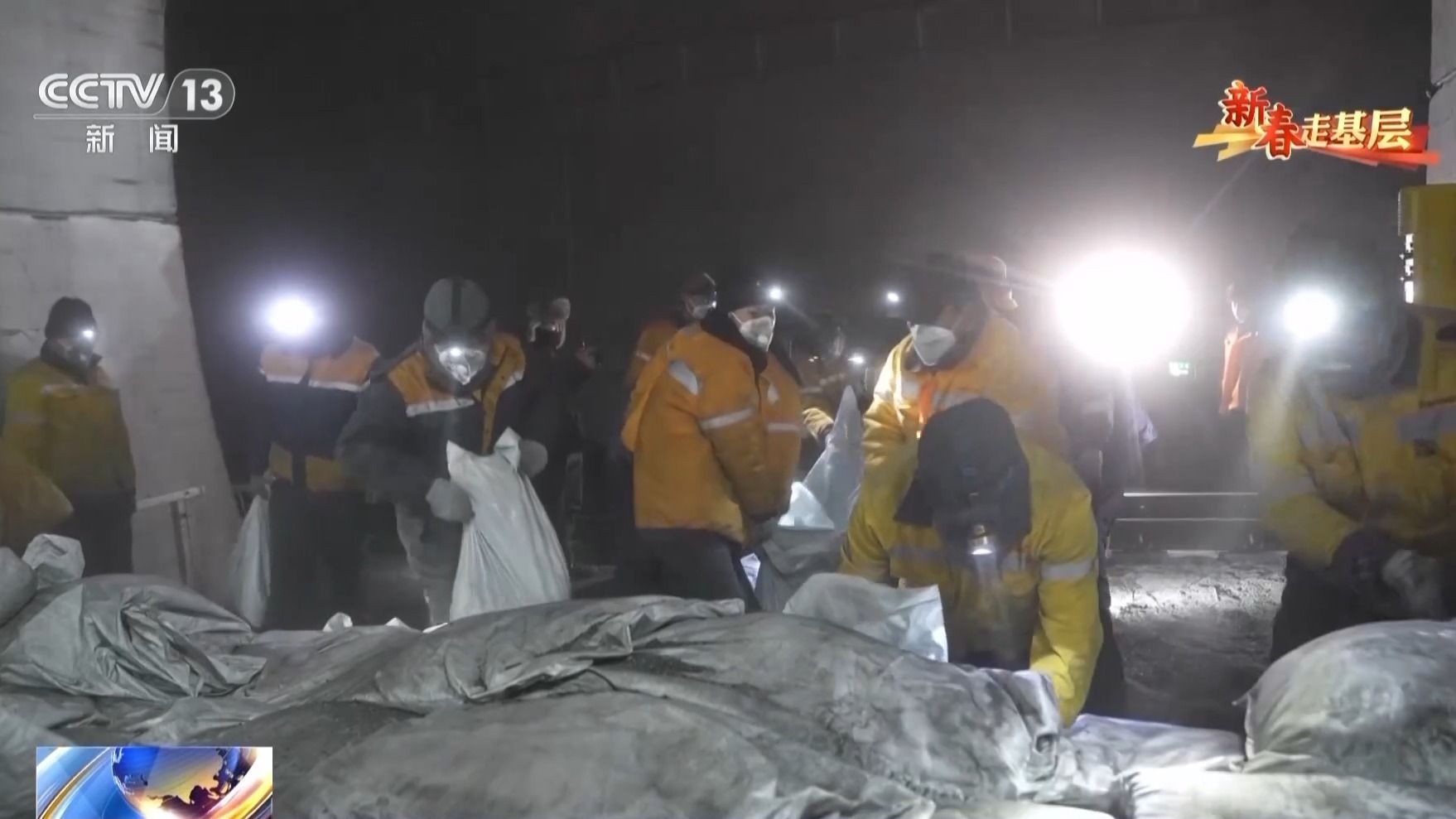 总台记者 崔宁:阿尔金山隧道的最高海拔大约是3550米,站在这里感觉喘气非常困难。像这样一个袋子,它的重量大概是25公斤到30公斤。今天大家要清理五六百袋这样的煤灰,体力消耗非常大。