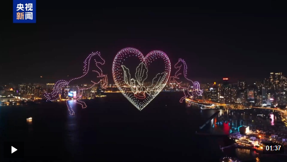 无人机表演融合骏马、新春、湾区元素,以巨型金色“马”字为开篇,依次呈现出奔腾的骏马、绽放的烟花、吉祥的灯笼等新春元素。无人机阵型变换展现骏马与港珠澳大桥、狮子山、维港建筑群、金紫荆等地标结合的美丽画面,寓意香港积极融入国家发展,奔腾向前。无人机表演展现了香港市民昂扬向上、齐心协力的精神风貌,更承载了对香港社会繁荣稳定、市民安居乐业的美好祝愿。