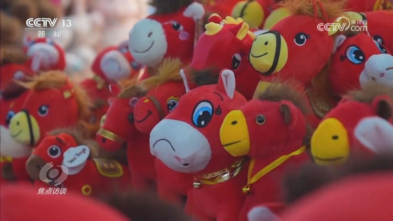 近年来,生肖文化、非遗主题的文创成为了新的过年硬通货,给孩子带上两个马年玩偶也是今年的潮流。在浙江义乌,今年春节年货市场里,生肖经济日益火热使得一款“哭哭马”玩偶意外走红。缝反嘴的“错版小马”委屈的表情不但没有被消费者嫌弃,反而因为提供了独特的情绪价值,很快就成了爆款。