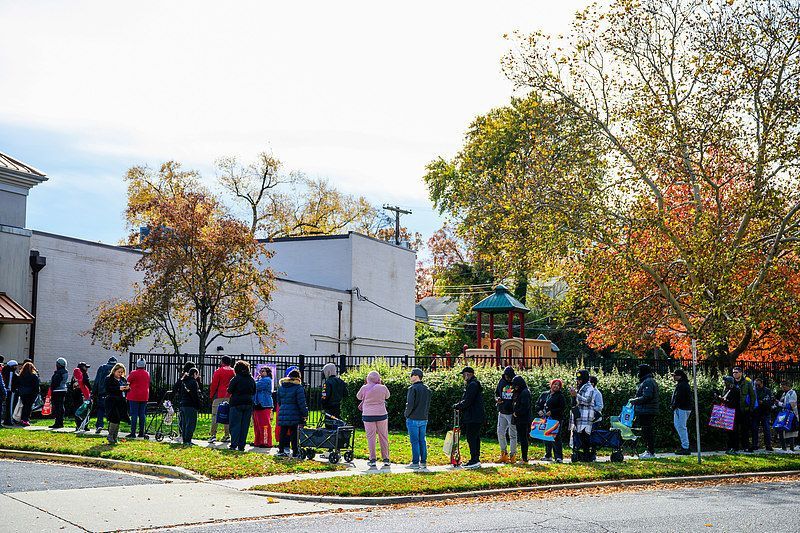 2025年11月,美国民众在食品银行排队等待食物分发