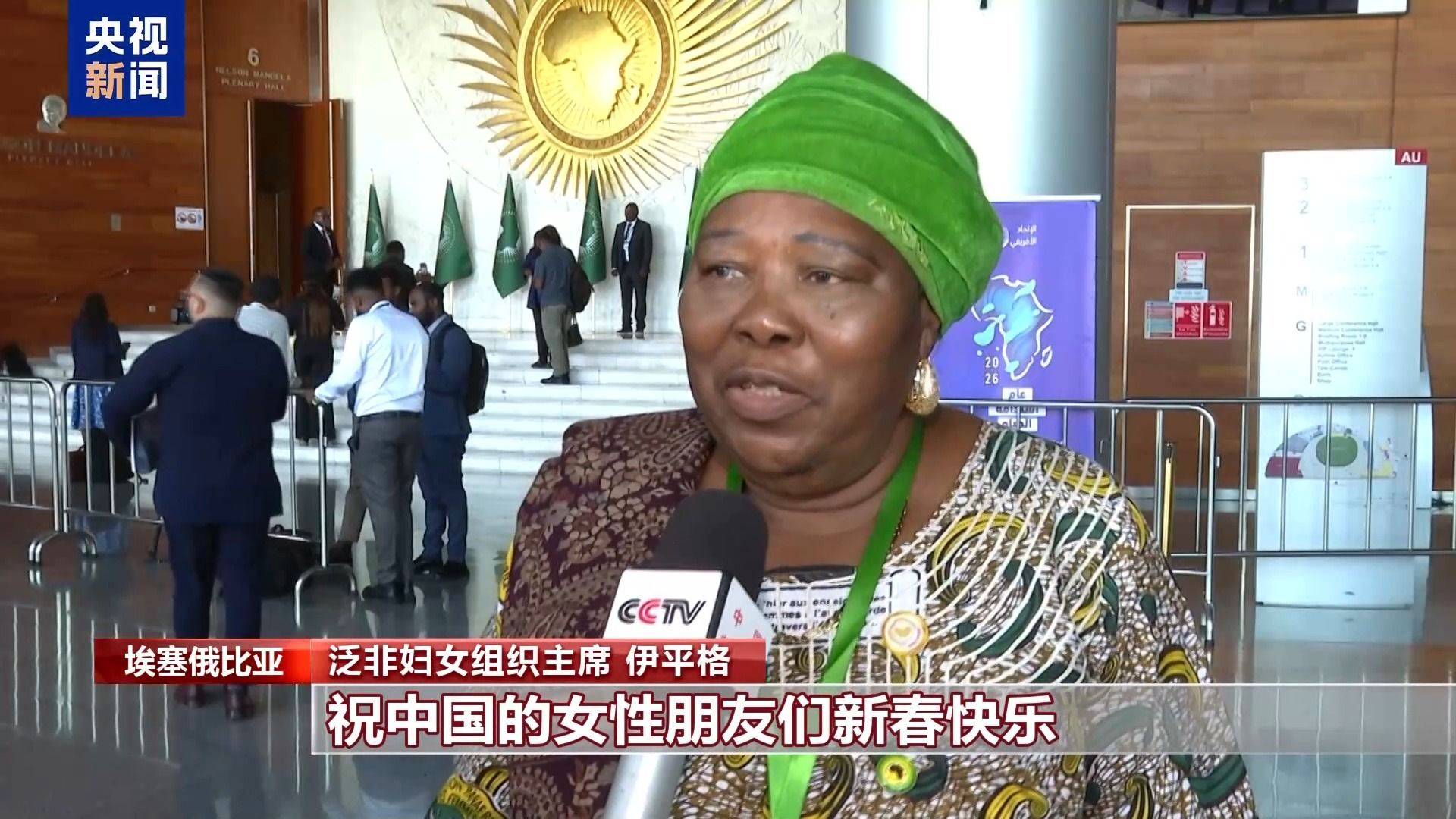 泛非妇女组织主席 伊平格:祝中国的女性朋友们新春快乐,她们是我们的伙伴。1995年,我们曾经去中国北京参加了北京世界妇女大会,非中的妇女一直都在紧密合作,我们祝愿中国女性新春快乐。