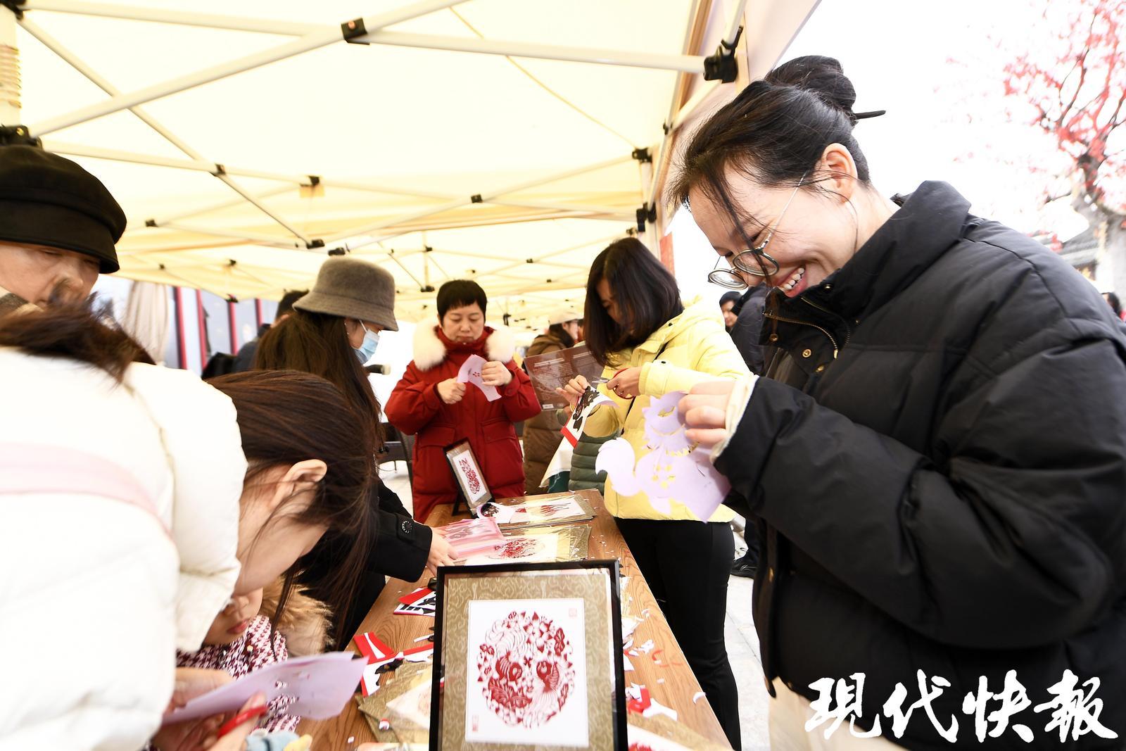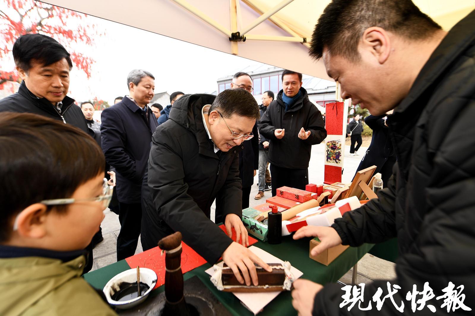 村宴,不仅是味觉的盛宴,更是一场民俗的雅集。2月1日的慢城村宴,是江苏省文学艺术界联合会主办的“迎春花开 马上来福”民艺过大年活动的一部分,集结了苏州桃花坞年画、南京剪纸、扬州漆器、常州梳篦、宜兴紫砂等全省各地民俗非遗,奉上一场全省联动的民间文艺盛宴。摄影、书画艺术家们为50户村民拍摄全家福,还为村民与游客送上装满春联、福字、年灯的新春大礼包。