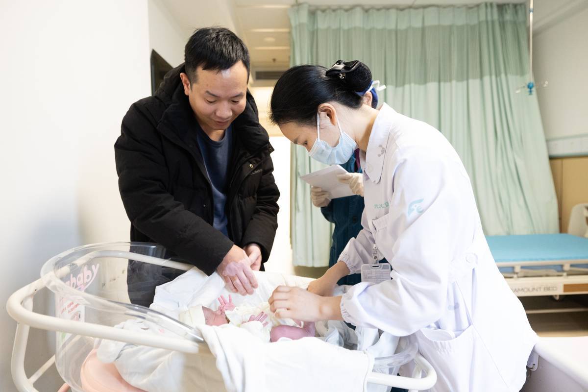 2026年2月17日,大年初一清晨,武汉儿童医院首个马宝宝在该院西院区顺利诞生!母女平安!图为护士在病房给新生儿父亲核对新生儿状况。(湖北日报全媒记者 何宇欣 通讯员 高琛琛 官笑涵 摄)