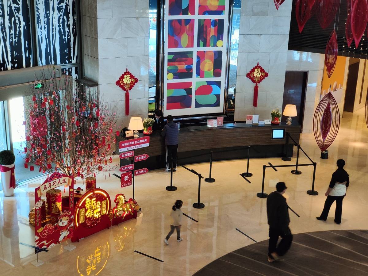 春节假期,武汉马哥孛罗酒店大堂布置喜庆。
