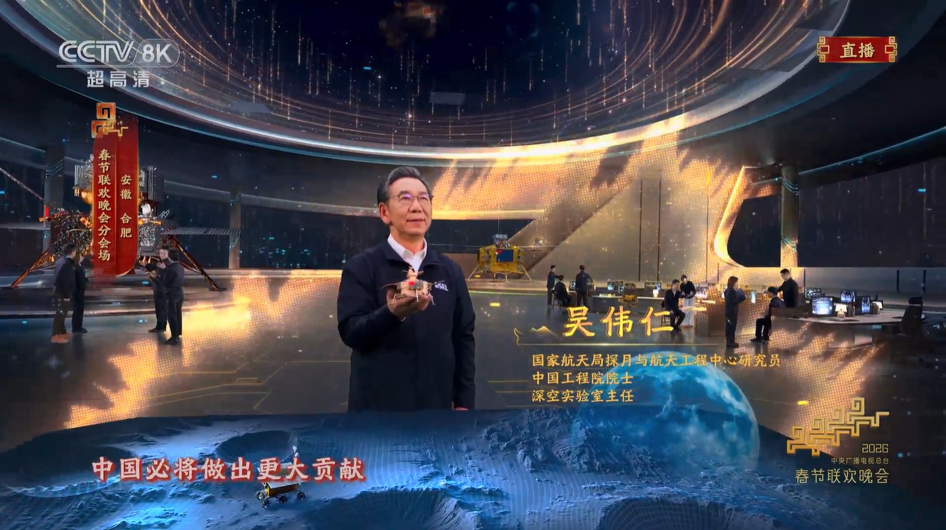 北京主会场,中国农业大学孙其信院士介绍了农业科技成果,传递着丰收的喜悦与科技兴农的力量。合肥分会场,吴伟仁、万元熙、潘建伟三位院士“本色出演”,让“量子”“核聚变”“深空探测”这些曾经高冷的科技词汇,化作温暖人心的节日祝福。