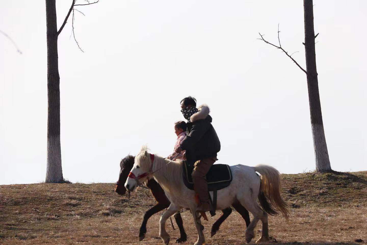 百里荒冰雪消费火爆,游客在畅滑之余,能体验滑索、骑马、喂鹿等山地互动。百里荒景区供图