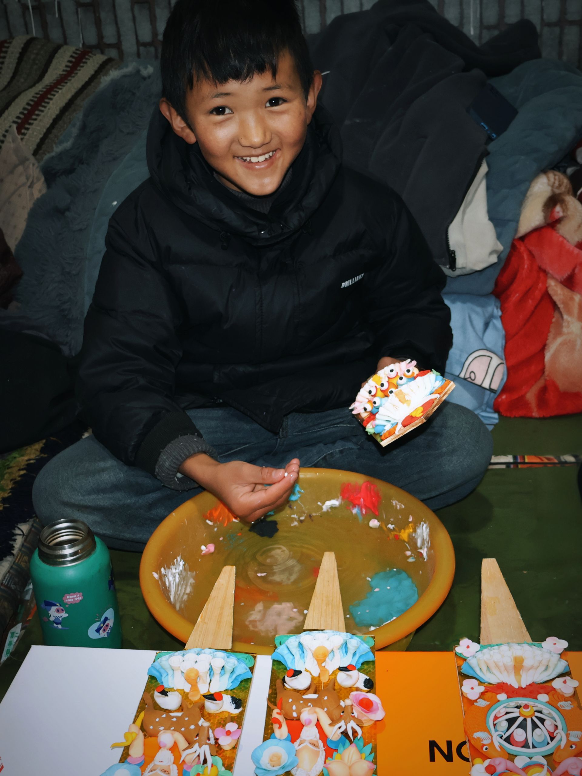 他叫平措,正埋头专注地整理材料,不时还会拿起一块酥油,尝试着捏出简单造型。
