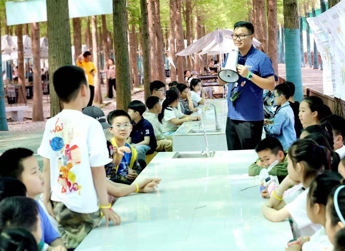 峒山村栖客露营基地负责人陈川刚刚陪孩子们参加完“插秧比赛。
