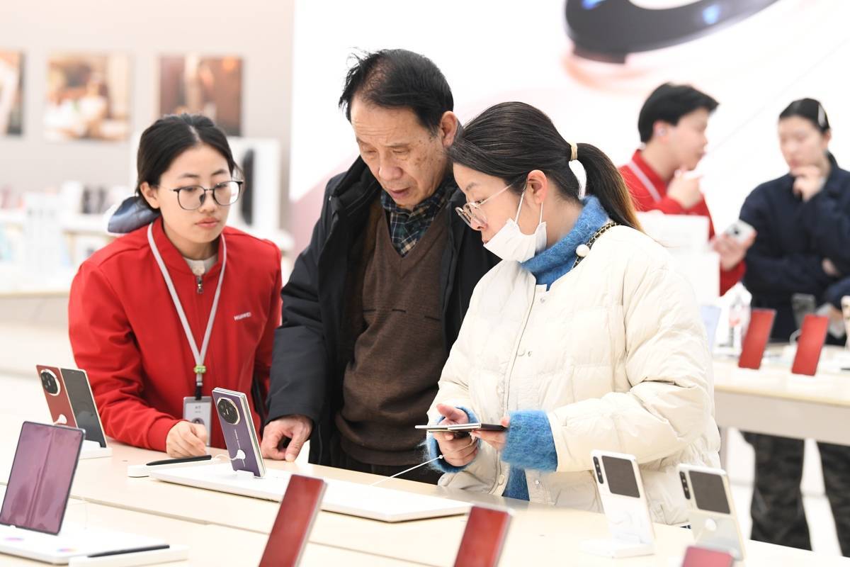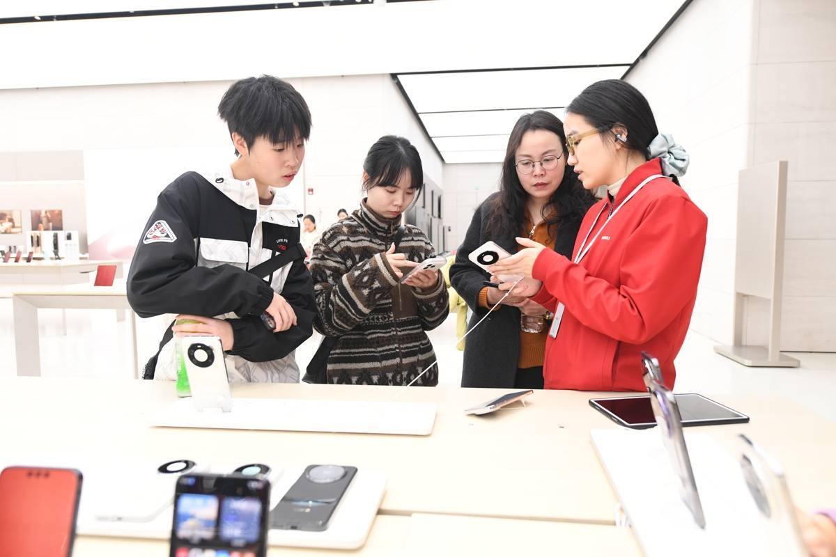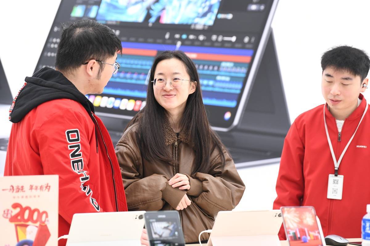 2026年2月19日,大年初三,在武汉市武昌区武商梦时代商场华为专卖店内,大批市民前来选购心仪的产品。春节假期,武汉江汉路步行街、武商系商业体、武汉万象城等重点商圈商街集体发力,以“文化+潮流+体验+惠民”打造多元创新场景,织就一幅“商文旅体”深度融合的新春消费图景,让江城年味更足、消费更旺。(湖北日报全媒记者 何宇欣 摄)