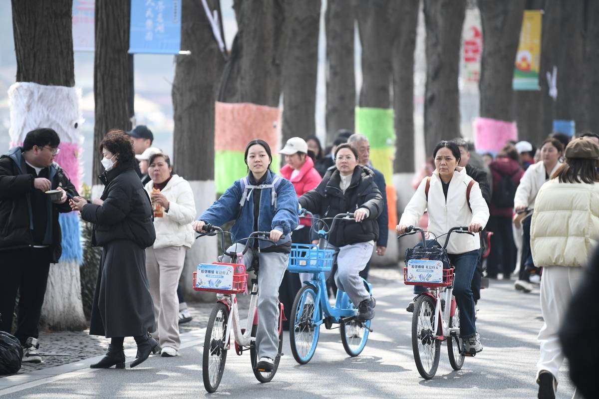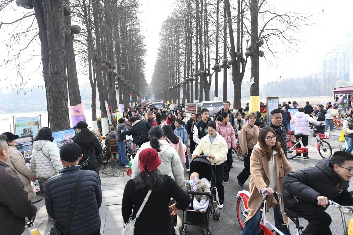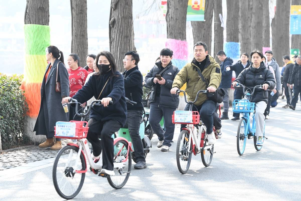 2026年2月19日,大年初三,大批市民游趁着春光来到武汉东湖绿道骑行漫步,在山水之间沉浸式感受“世界名湖,人民乐园”的独特魅力,度过喜庆祥和的新春佳节。(湖北日报全媒记者 何宇欣 通讯员 高梦雅 摄)