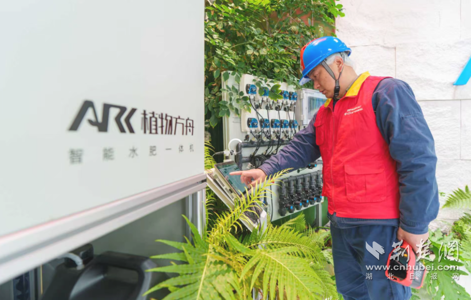 武汉植物方舟智能科技有限公司,国网武汉市供电公司工作人员正对智能水肥一体机等用电设备进行检查,确保春节前生产高峰安全稳定用电。张恒摄