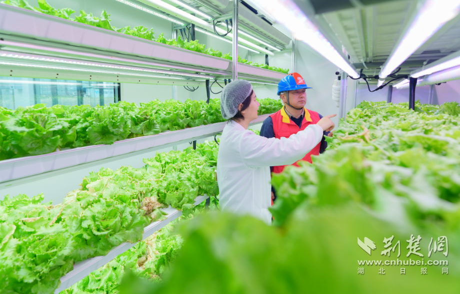 武汉植物方舟智能科技有限公司,国网武汉市供电公司工作人员正对生菜种植室内的用电设备进行检查,确保春节前生产高峰安全稳定用电。张恒摄