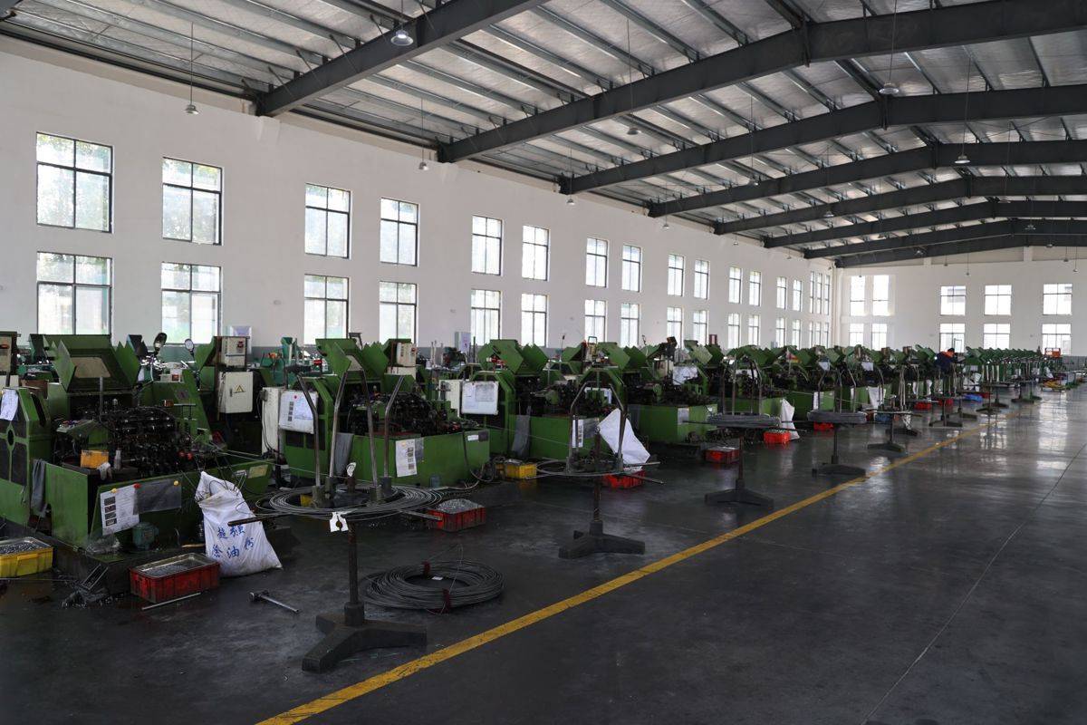 农历新年前,记者走进厂区,只见厂房一栋接着一栋,总面积3万多平方米,车间里一台台冷镦机整齐排列,每台机器旁都放着一大卷钢丝。伴随着嚓嚓的声响,冷镦机不断将钢丝“吃”进肚子,“吐”出一颗颗铆钉。