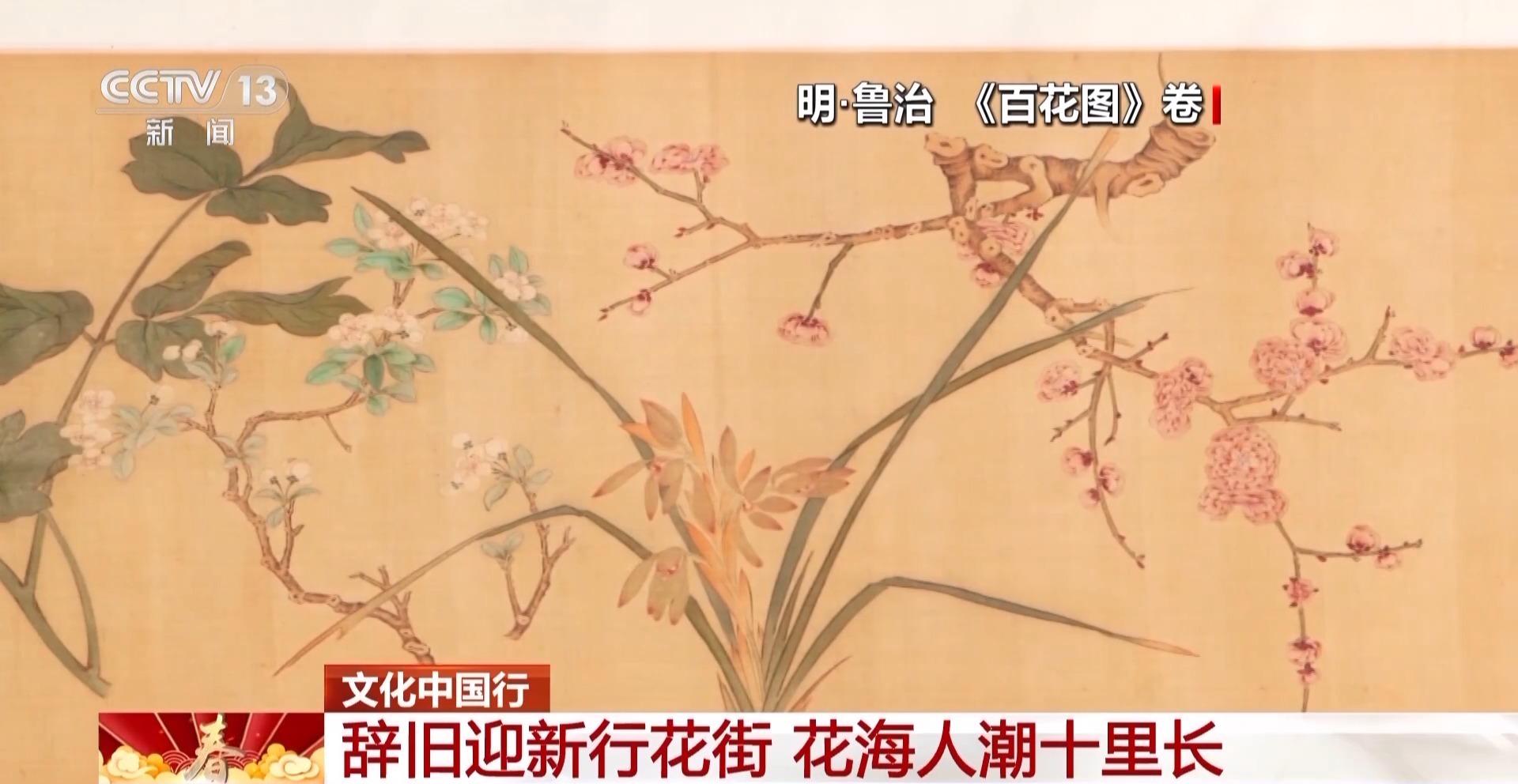 中国人对花的喜爱由来已久,一件广东省博物馆的镇馆之宝,由明代花卉画家鲁治所绘的《百花图》卷,以细腻写实的笔触描绘了那时人们常见的草木。其中,坚韧不拔的梅花、清雅脱俗的水仙和寓意美好的玉兰等如今迎春花市中人们依然喜爱的花卉跃然纸上,反映着中华传统文化中,人与自然和谐共生,以花卉寄托追求理想品格期盼的观念。