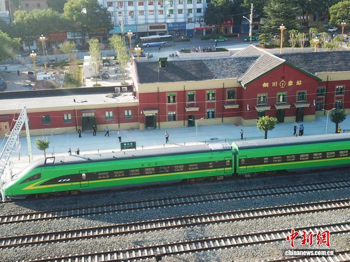 图为绿巨人动车组驶进铜川东站。(资料图)赵宏亮 摄