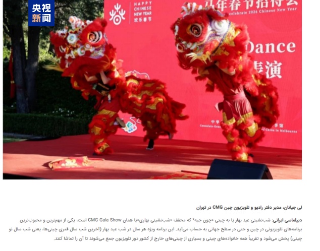 总台驻德黑兰站记者李健南在伊朗新闻网站发表《总台春晚:一场中国文化走向世界的盛大晚会》《联合国教科文组织播放总台春晚预告片彰显中国文化魅力》等署名文章,介绍了总台春晚的重要意义。(总台记者 孙虎 周宣)