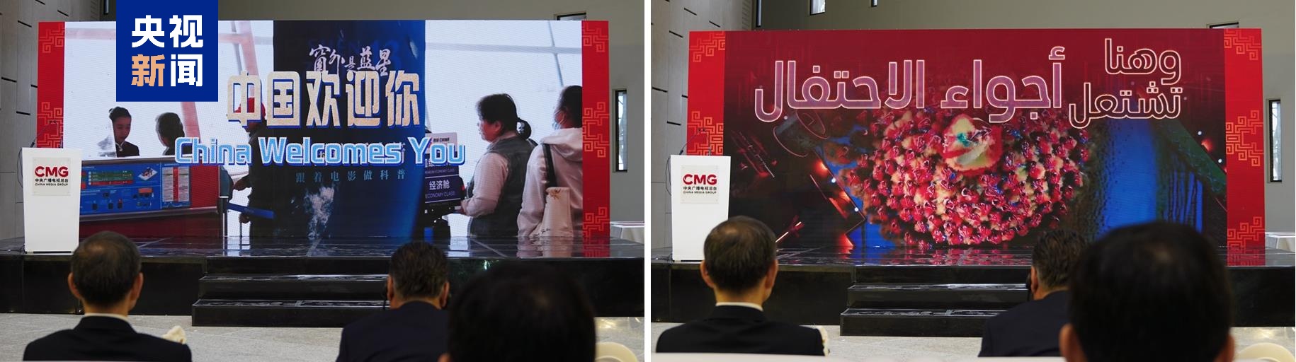 △阿拉伯国家主流媒体代表现场观看总台马年春晚主标识