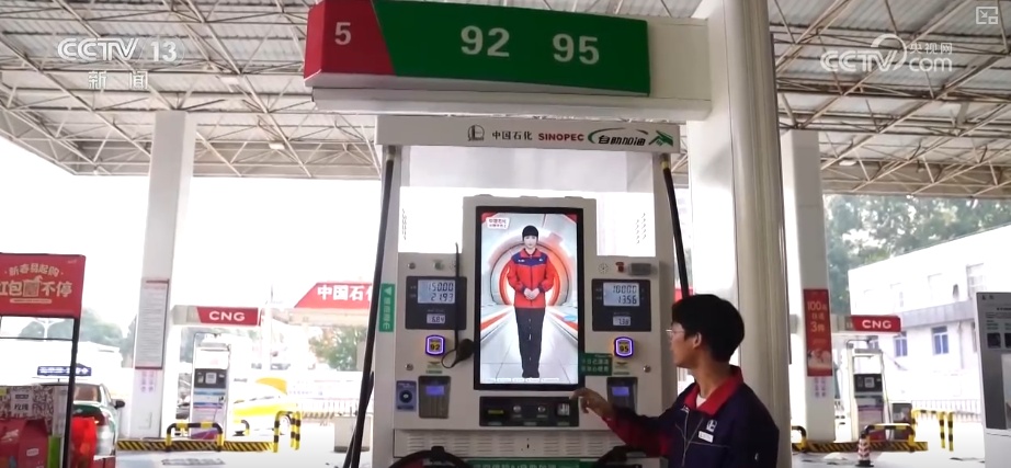 在广西南宁新阳综合加能站,记者看到了我国自主研发的第四代加油人。车主只需通过现场的智能显示器,选择油品型号,机器人便会自动启动全流程智能服务。3D视觉系统精准识别车辆型号与油箱位置,机械臂灵活开启油箱盖、抓取油枪、精准加注,全程仅需120秒即可完成加油。加能站里的AI数字人则成为“全能引导员”,为旅客提供导航查询、充电咨询、路况播报等“一站式”服务。