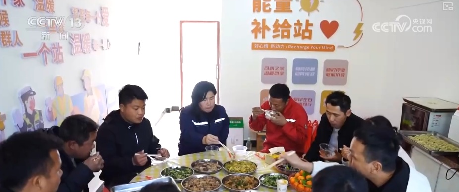 上午10时40分,林树忠的新能源汽车完成充电,缓缓驶离加能站。记者一路同行,经过近两个小时的行驶,抵达广西梧州藤县服务区加能站。在加能站内的司机之家休息区,林树忠夫妻俩带着孩子,吃上了站里为返乡司乘人员准备的热气腾腾的午餐。