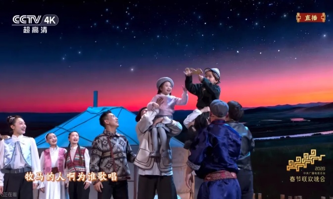 舞台上,演员们在蒙古包旁,再现着草原上的劳作与欢聚,辽阔的草原不再是遥远的想象,而是充满烟火气的家园。