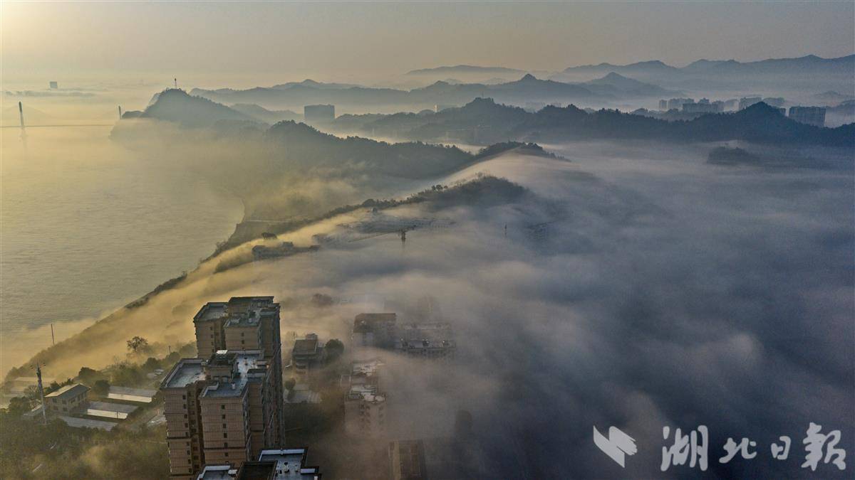 2月21日,正值马年春节大年初五,宜昌城区及周边出现绝美平流雾景观,清晨的朝霞穿透薄雾,与缥缈雾霭交相辉映,将这座峡江城市装点得宛如仙境,为新春佳节增添了别样的诗意与美好。(湖北日报全媒记者 刘曙松 摄)