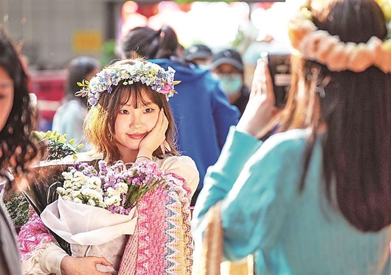 游客在云南昆明斗南花卉市场拍照。新华社发