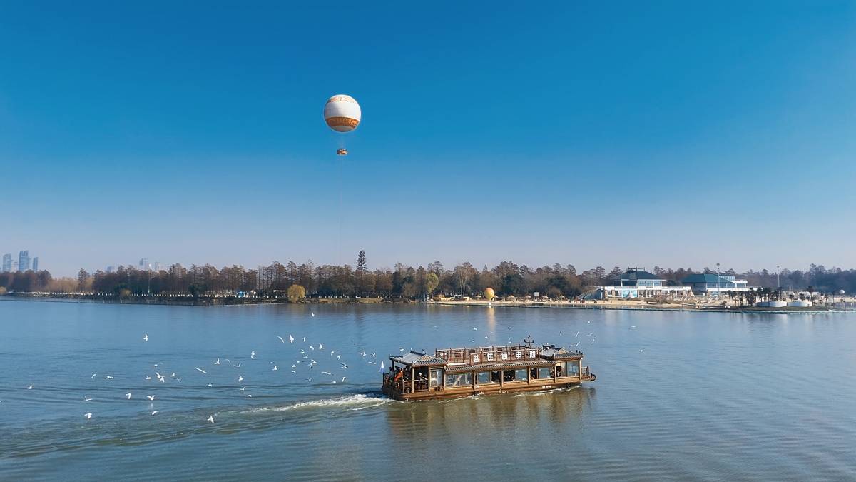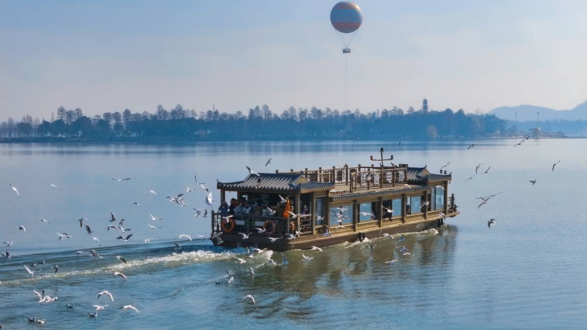 据武汉观鸟协会观测,今年在东湖越冬的红嘴鸥数量接近500只,达到近年峰值。每年11月,这群来自西伯利亚的“白色精灵”如约飞抵东湖,在碧波荡漾的湖面上栖息、嬉戏。优良的生态环境、充足的食源,让它们在东湖安心度过整个冬天。楚风园码头、磨山北码头、碧潭观鱼等热门点位,处处可见“鸥影翩翩逐碧波”的美景,“鸥随船动”的画面在社交平台持续刷屏,让“冬季到武汉看鸥”成为新的城市文旅IP。