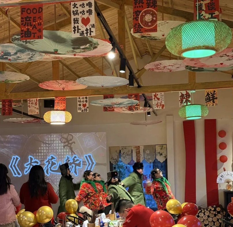 正月初四,洋澜湖畔,泊野·小院望的主理人小恩正忙着直播互动,小院内,顾客们或是围炉煮茶,或是拍照打卡。挂红灯笼、贴上春联,今年春节,她的小院从日常的静谧悠闲,转变为充满传统年味的烟火场景。