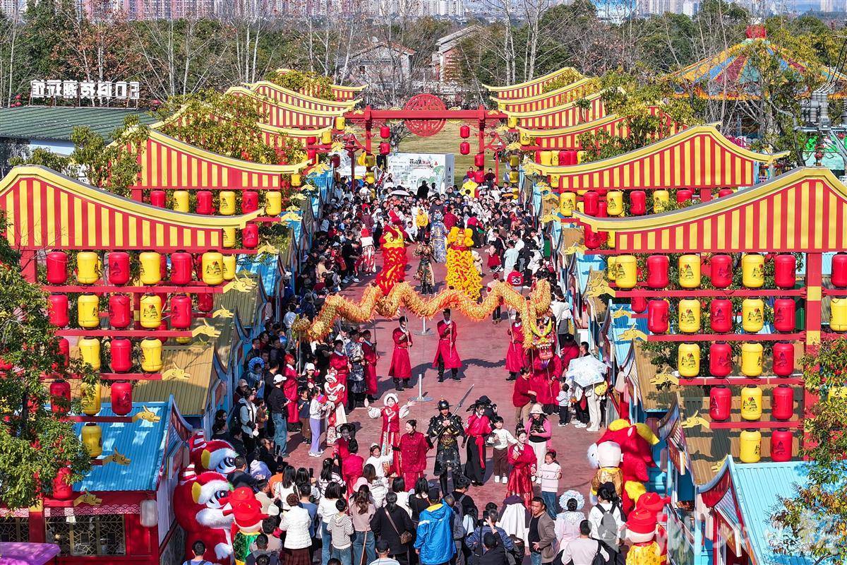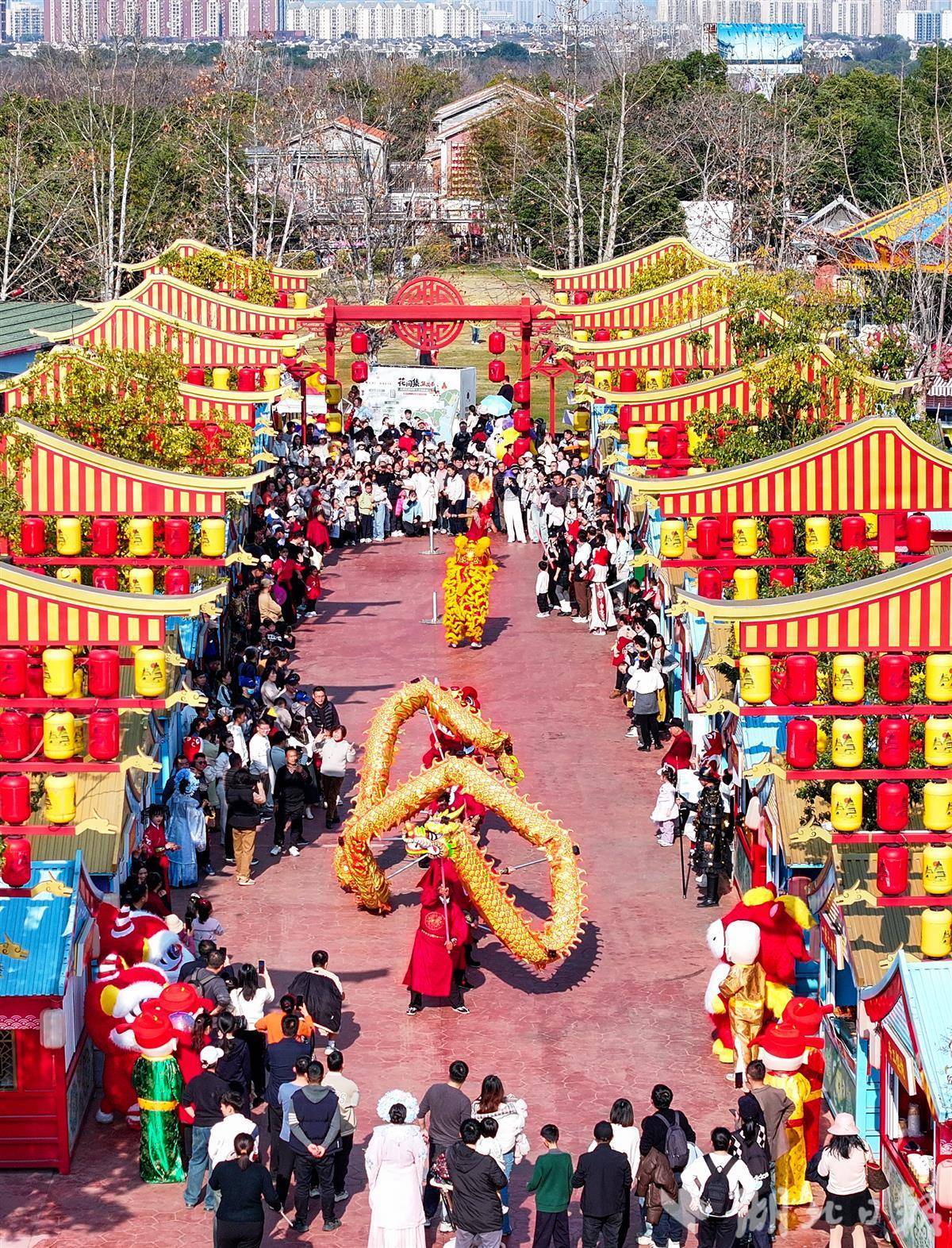 2 月 21 日,武汉花博汇上演龙腾盛世大巡游民俗活动,热闹非凡。