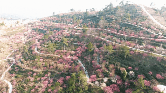 花乡茶谷按春夏秋冬布局有六大花园茶园,春节期间,景区320个品种10万余株梅花依次绽放,53个樱花品种中的河津樱、中华红樱、牡丹樱也陆续盛开,形成了山峦起伏的花海景观。