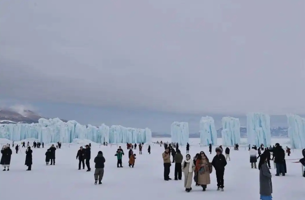 赛里木湖景区,游客赏冰雪风光、体验非遗民俗、嗨玩冰雪项目,在“蓝冰之约”中感受别样年味。