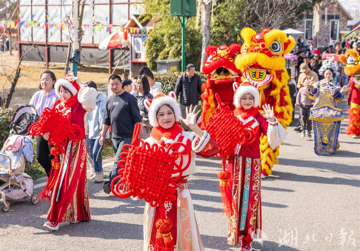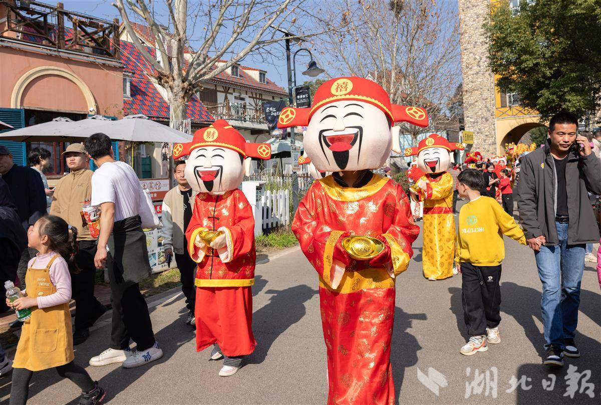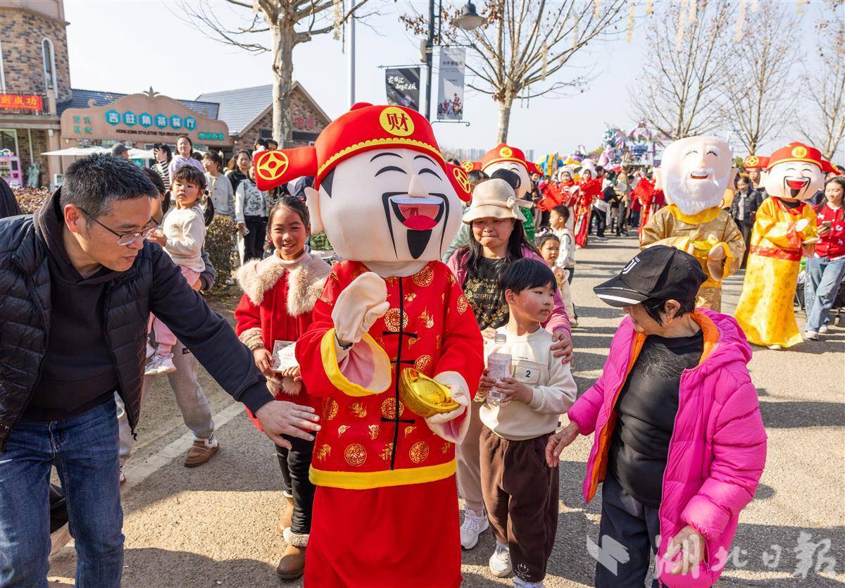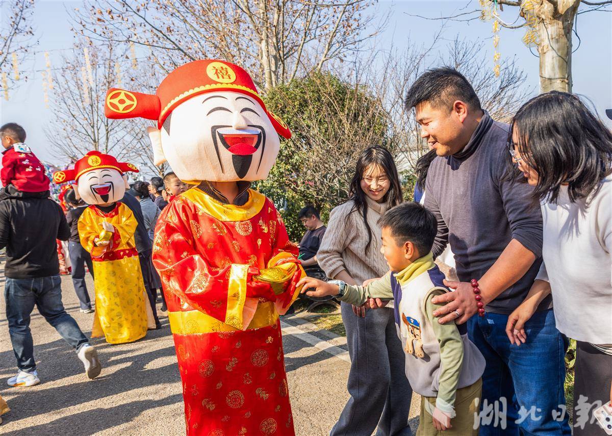 2月21日,正月初五,民间迎财神吉日,武汉花博汇举办特色民俗互动活动。多位“财神”亮相园区,与市民游客欢乐互动、送福迎春,现场喜气洋洋、热闹非凡。大家在游园赏花中感受传统年俗,乐享新春喜庆氛围。(湖北日报全媒记者 薛婷 通讯员 黄婷 摄)
