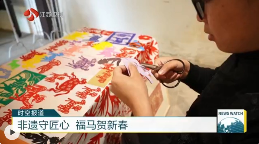 徐州剪纸非遗传承人刘冠玉说:“也是为了迎接春节。今年是马年,我就剪了100匹马。让这项老手艺跟着年节的脚步一直走下去。”