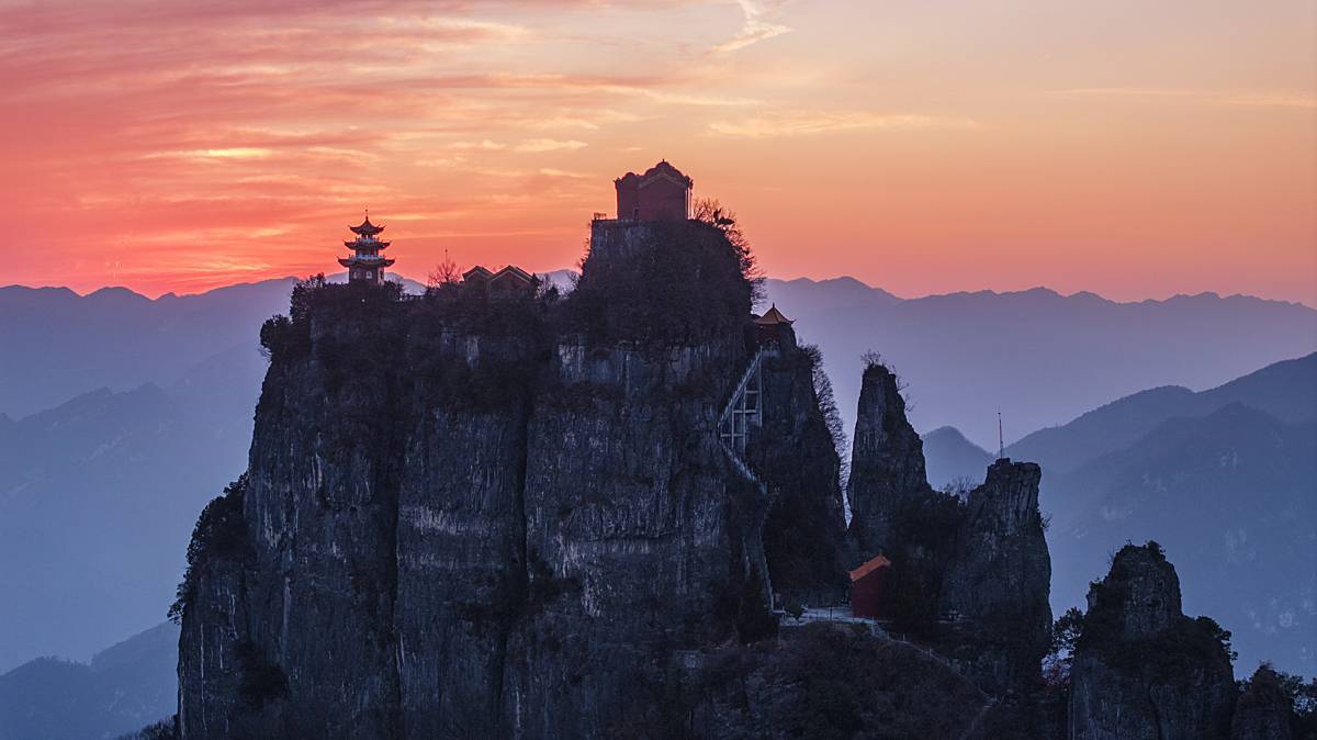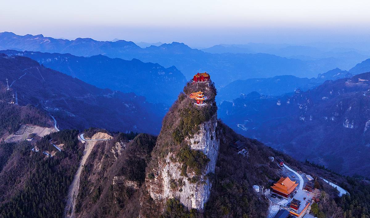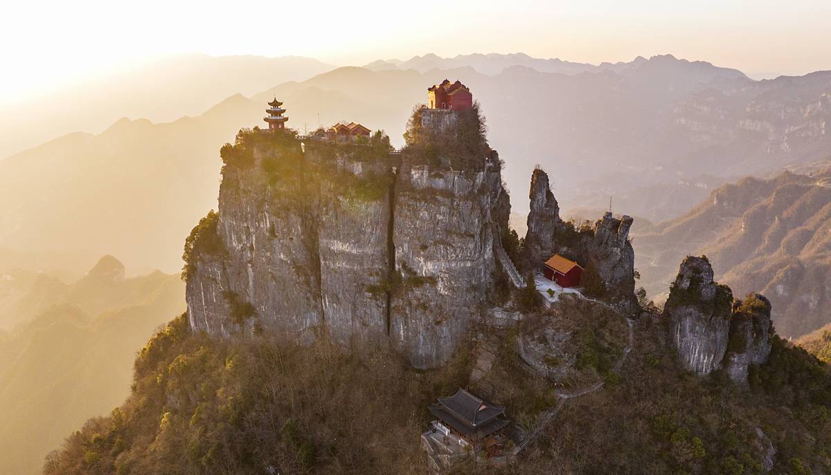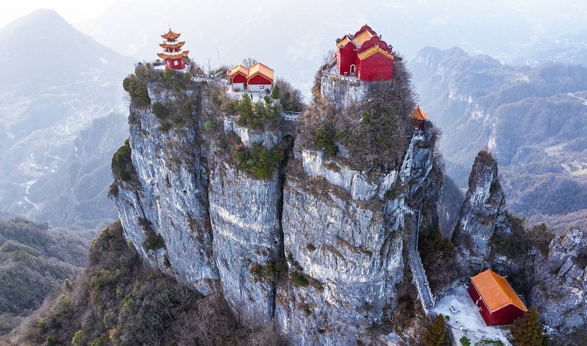湖北长阳天柱山,孤峰峙立,拔地耸立,有健笔凌云之势,真是大自然神奇和绝世之功。这个春节,别再宅家啦!来长阳天柱山,感受一场视觉盛宴!(湖北日报全媒记者 朱熙勇 摄)
