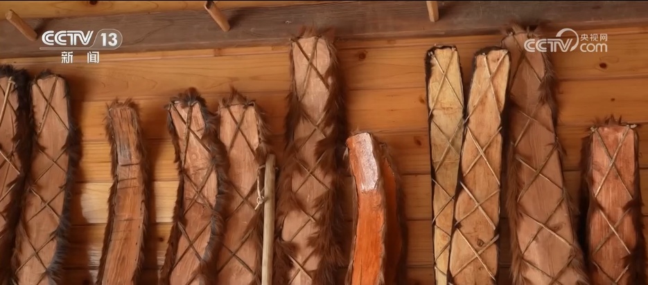 这种用马毛和木材制成的毛皮滑雪板在漫长的岁月里一直都是当地农牧民不可或缺的出行工具,在如今的阿勒泰它依然十分常见。今年已经70多岁的胡安什别克·斯兰别克从父辈手中继承了制作毛皮滑雪板的手艺,手艺里凝结着的是祖辈顺应自然、适应环境的生存智慧。
