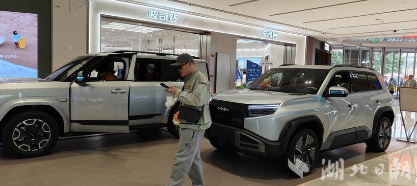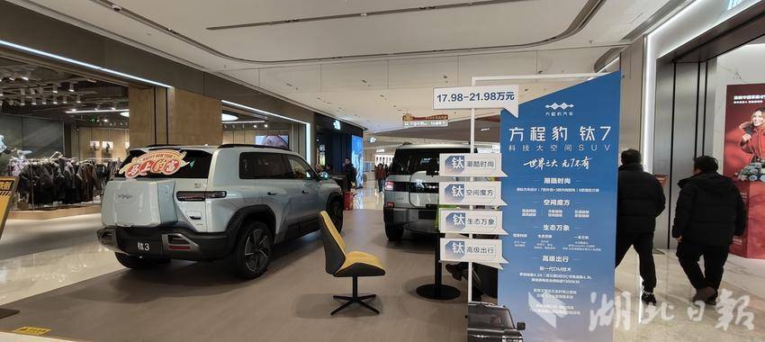 武汉亲橙万象汇1号门入口处,展示了两台方程豹。湖北日报全媒记者 汪洋 摄