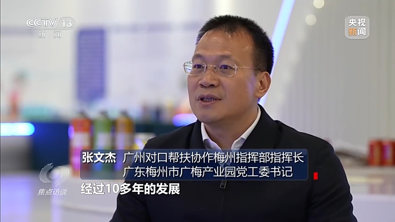 广州对口帮扶协作梅州指挥部指挥长、广东梅州市广梅产业园党工委书记 张文杰:我们这个园区就是广州对口帮扶协助梅州的产业园区,2013年开始广州就来对口帮扶协作了。经过十多年的发展,广州市总共投了60多个亿的资金在里面,前后广州市安排了两千多人次的干部在梅州开展对口帮扶协作工作。我们用“三个真”来表达——真心真意、真金白银、真抓实干,推进梅州的产业发展。