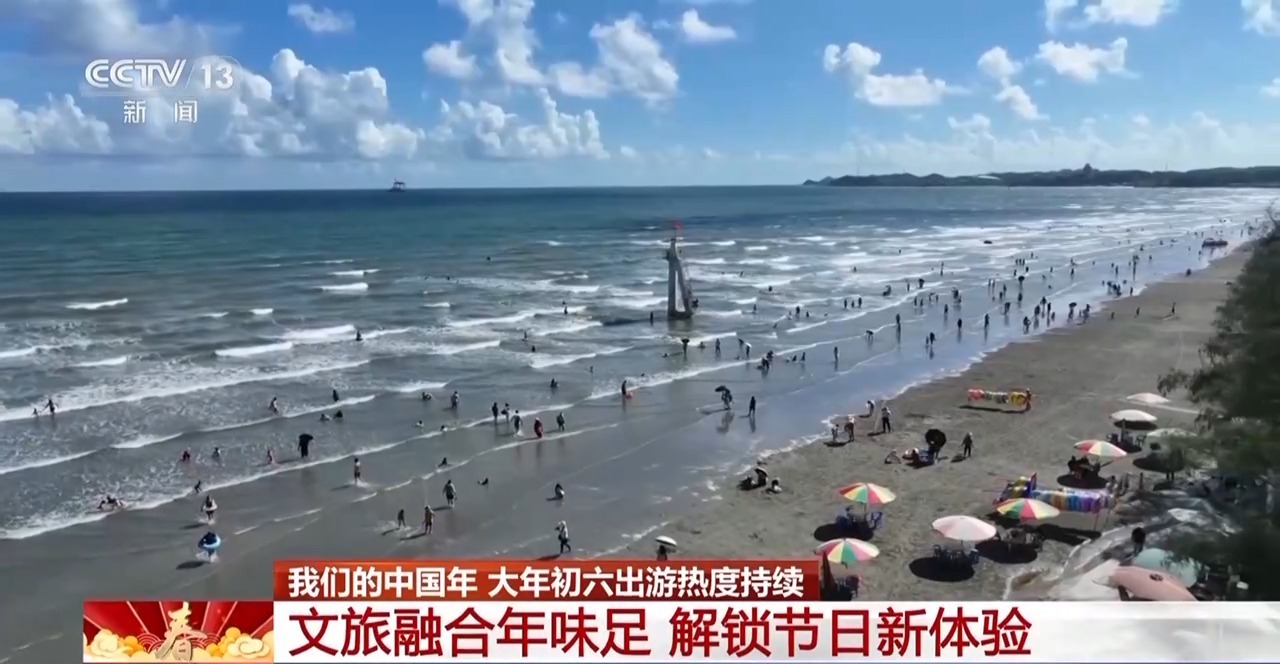 广西防城港的白浪滩景区,凭借细腻的沙滩以及壮阔的海景,迎来了各地游客,感受独属于海边的年味。