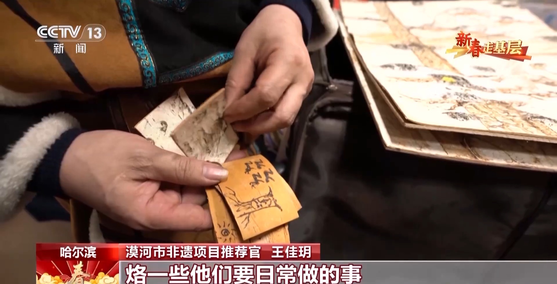 漠河市非遗项目推荐官 王佳玥:最初鄂伦春人想记录一件事情,就用烧红的刀烙一些他们日常做的事。在火车上展示非遗时间很充裕,能跟游客讲解得更明白,不是像走马观花一样,能让更多人了解这些非遗项目。