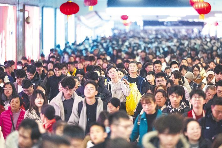 2月22日,随着春节假期进入尾声,武汉铁路迎来返程客流高峰。汉口火车站出口廊道内人头攒动,旅客们拖着大包小包抵达武汉,准备收拾好心情,元气满满地迎接新一年的工作。