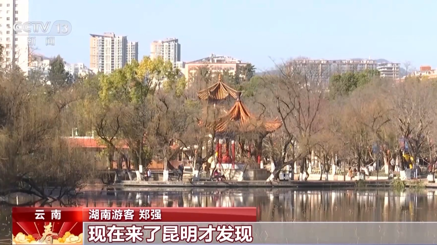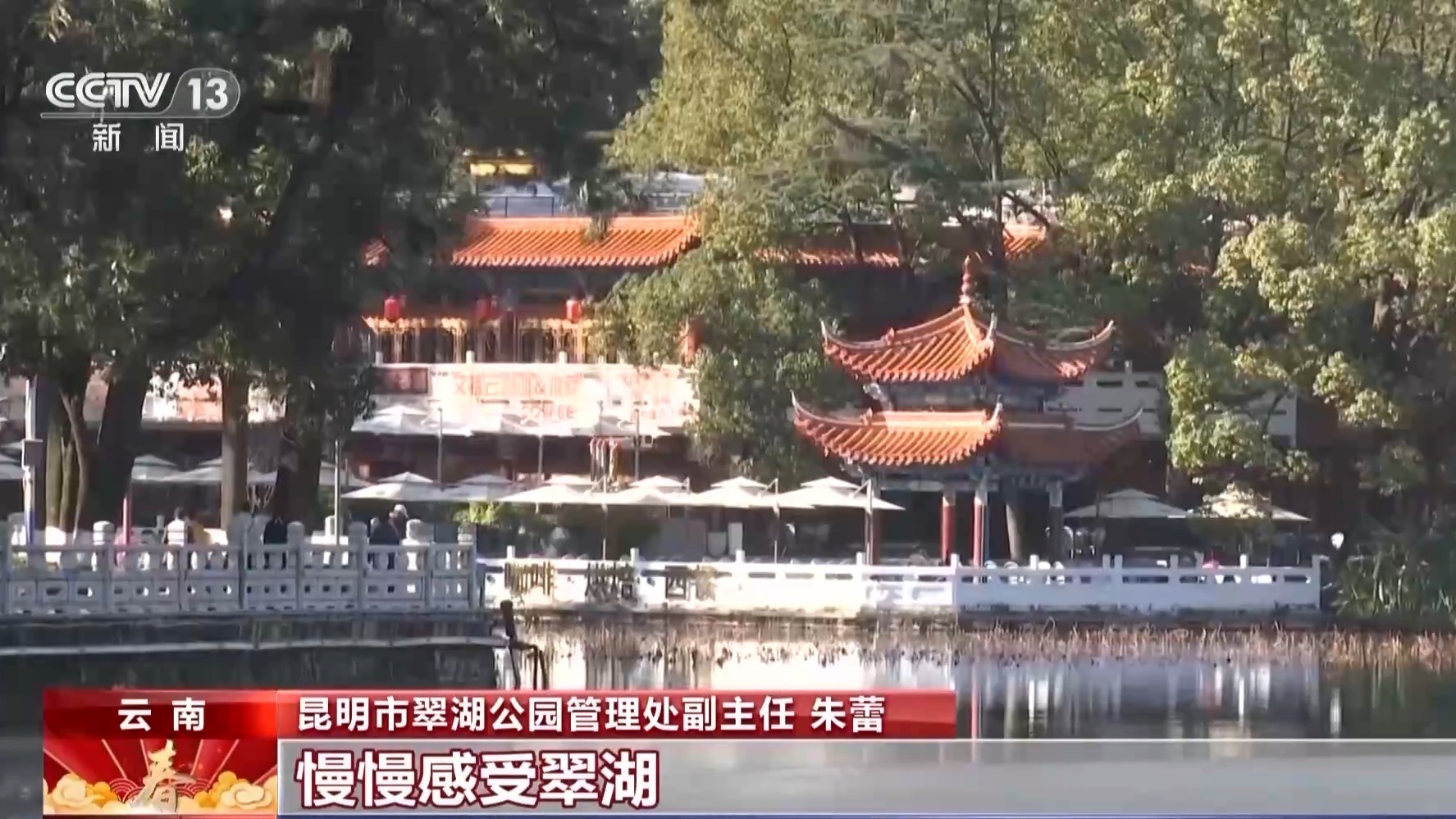 昆明市翠湖公园管理处副主任 朱蕾:翠湖不仅是电影的取景地,更是春城昆明的精神栖息地。我们要让游客在打卡光影场景的同时,能够停留得更久一些,慢慢感受翠湖,感受昆明的历史厚度和生态之美。