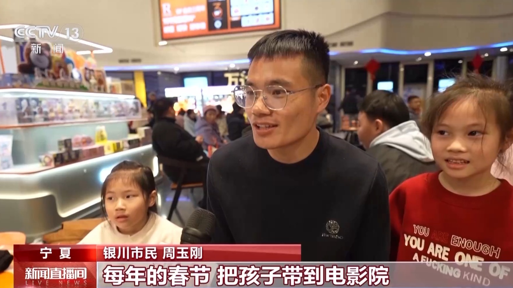 银川市民 周玉刚:每年的春节,把孩子带到电影院是我们家约定俗成的事,因为要给孩子一种仪式感,给她满满的年味。