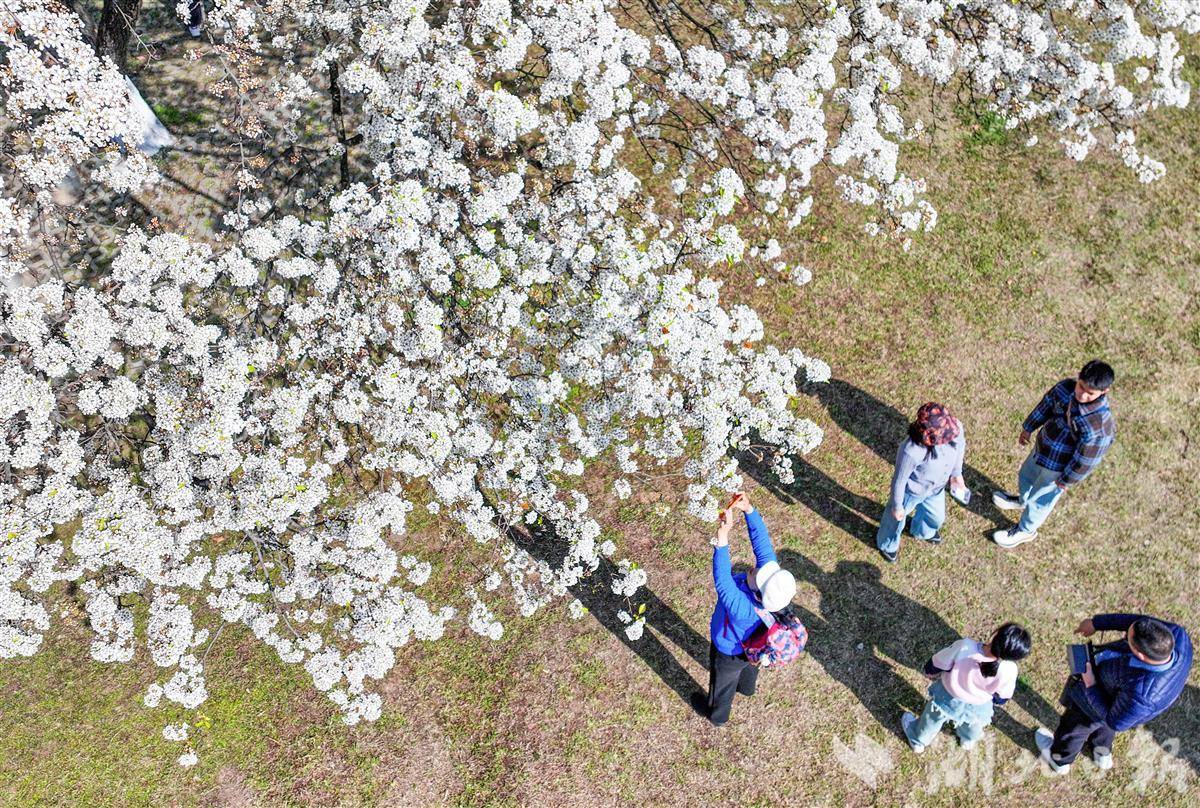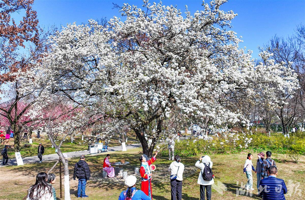 2月22日,武汉青山公园,梨花悄然绽放,如云似雪,吸引了大量游客前来观赏和拍照。