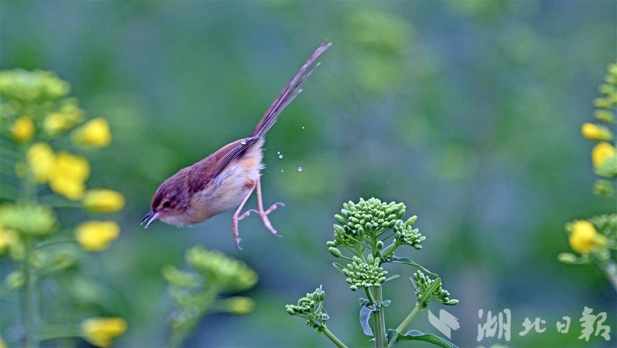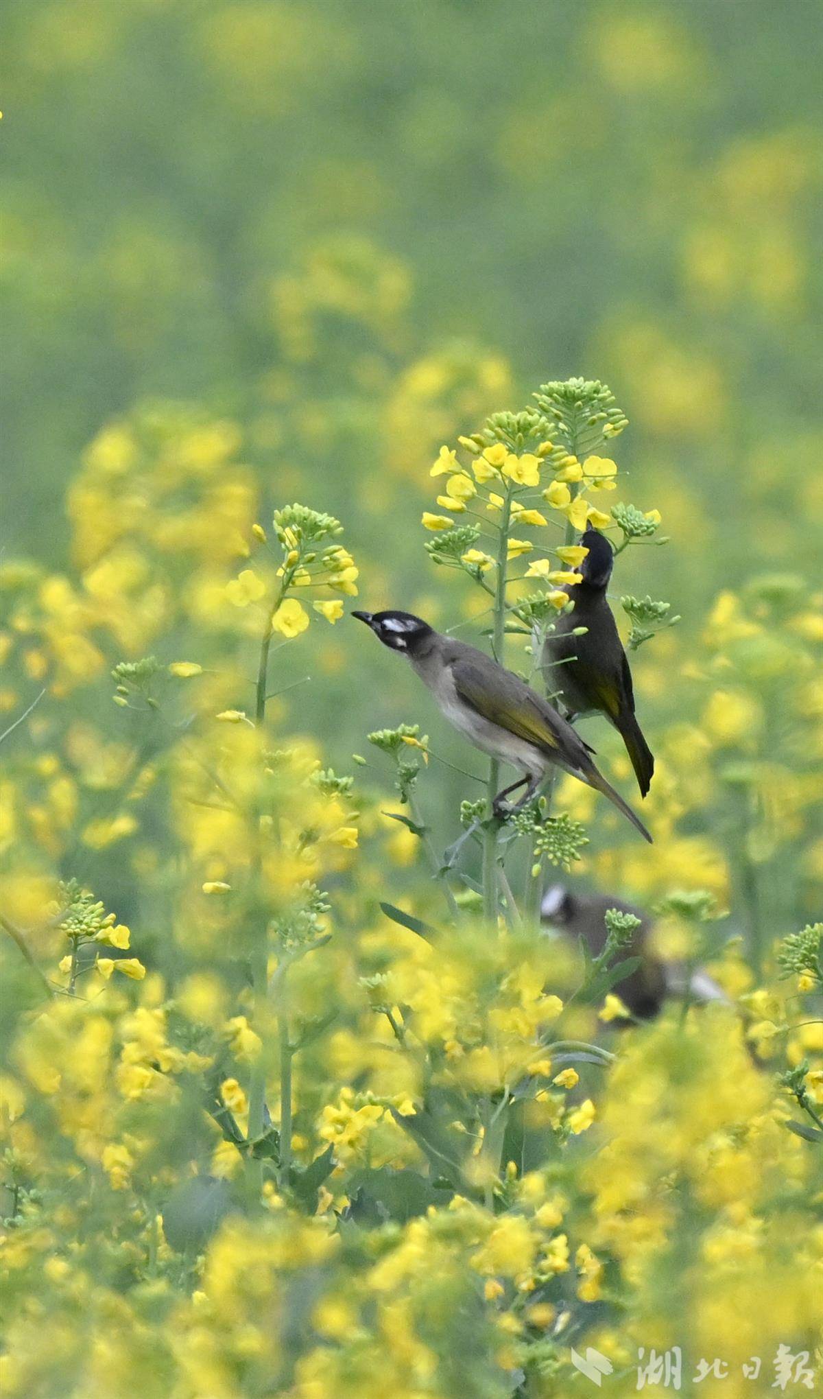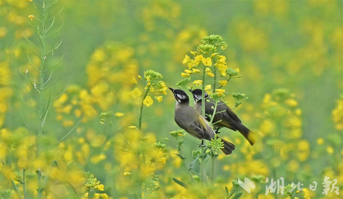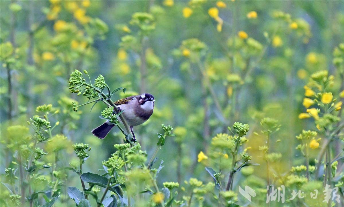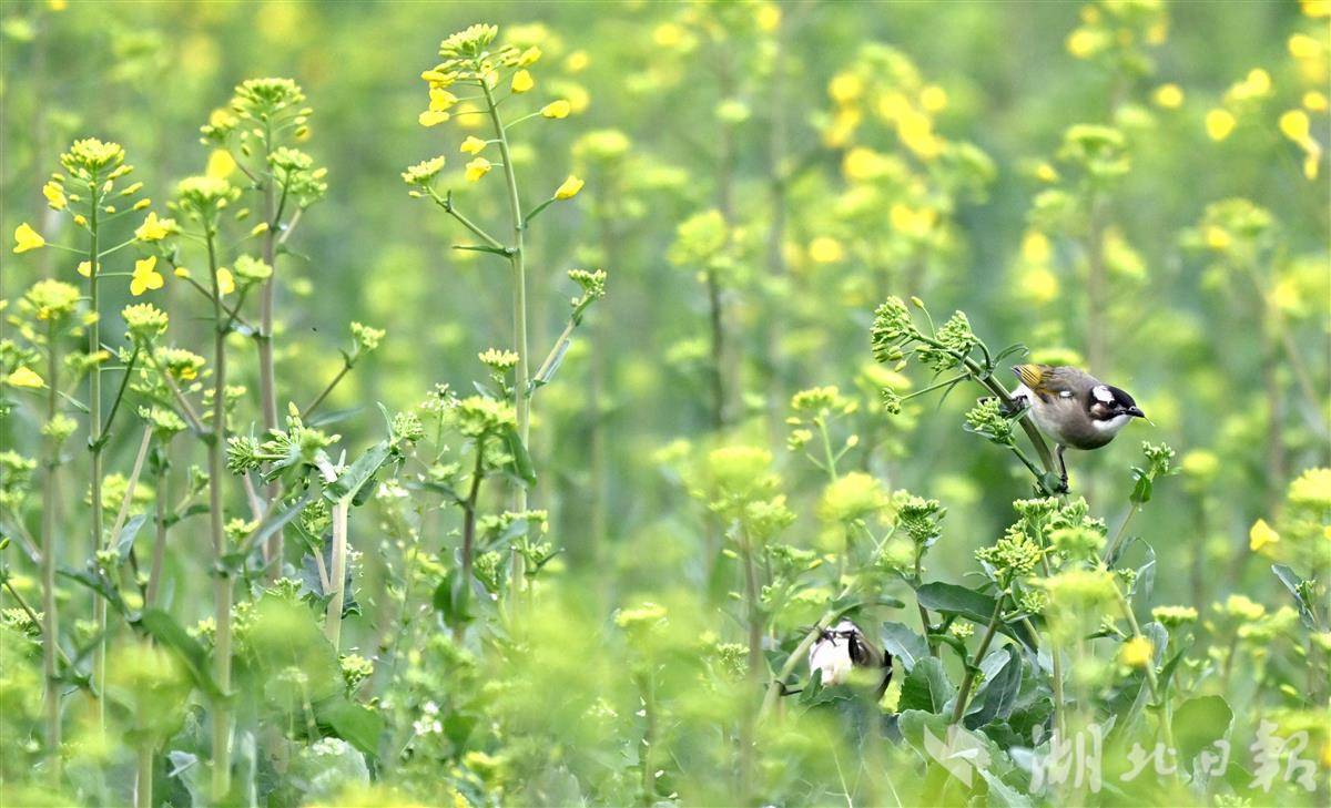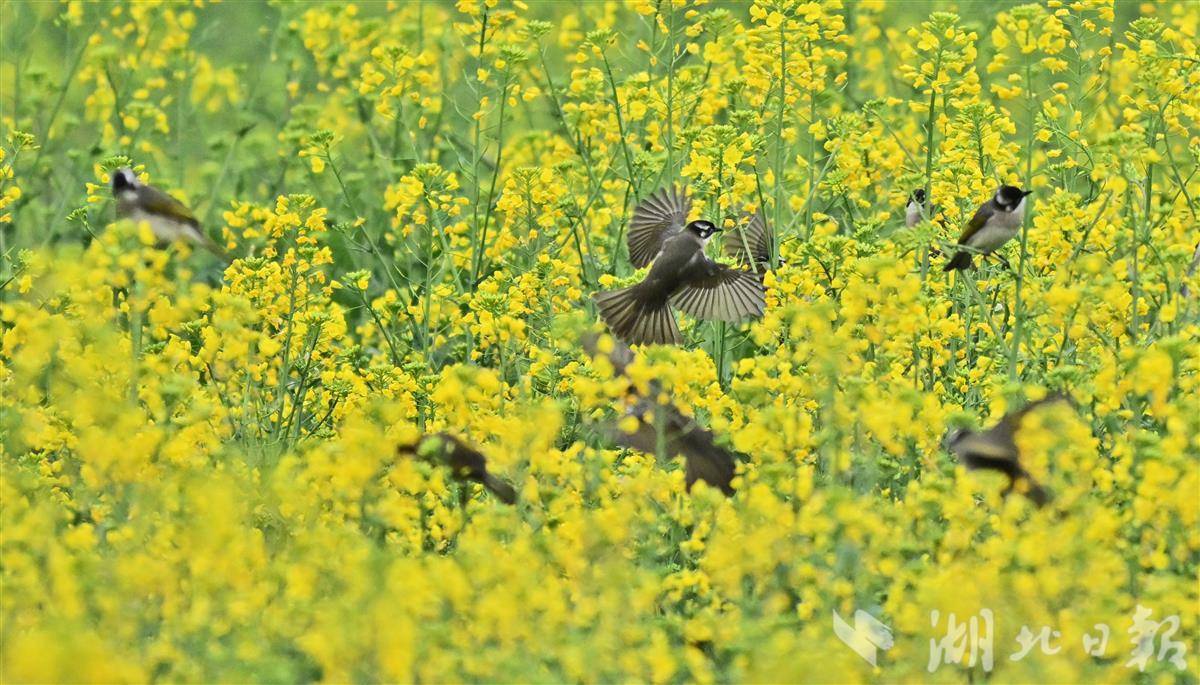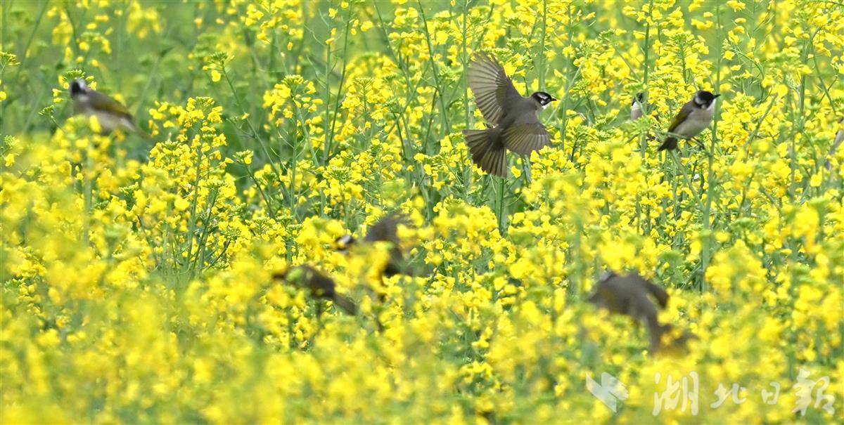 清晨时分,薄雾尚未散尽,各类小鸟翩跹而至,在金黄的油菜花间穿梭嬉戏、婉转啼鸣,清脆的鸟鸣与淡淡的花香交织在一起,构成一首悦耳的春日生态乐章。(湖北日报全媒记者 刘曙松 摄)