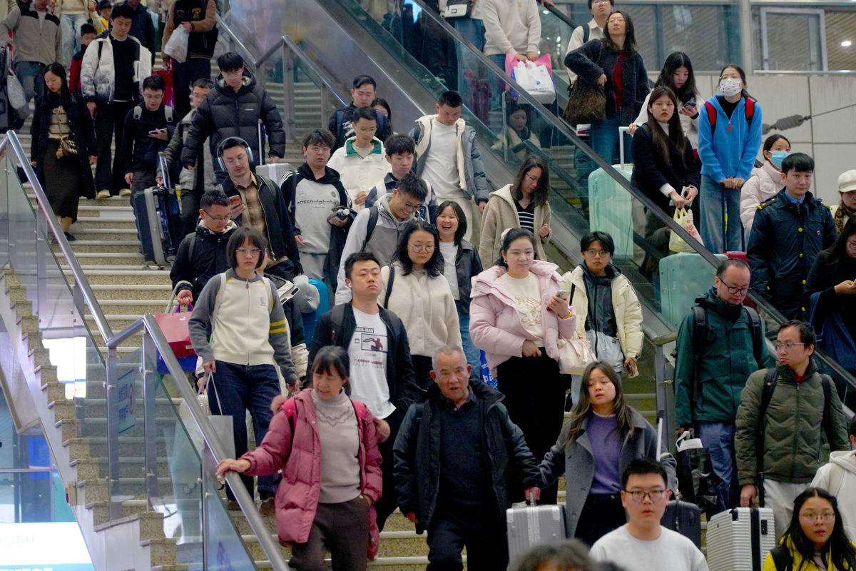 图为武汉站,即将踏上返程旅途的小旅客。