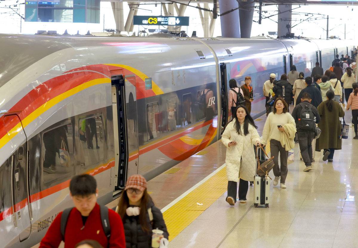 图为武汉站,旅客有序进站乘车。