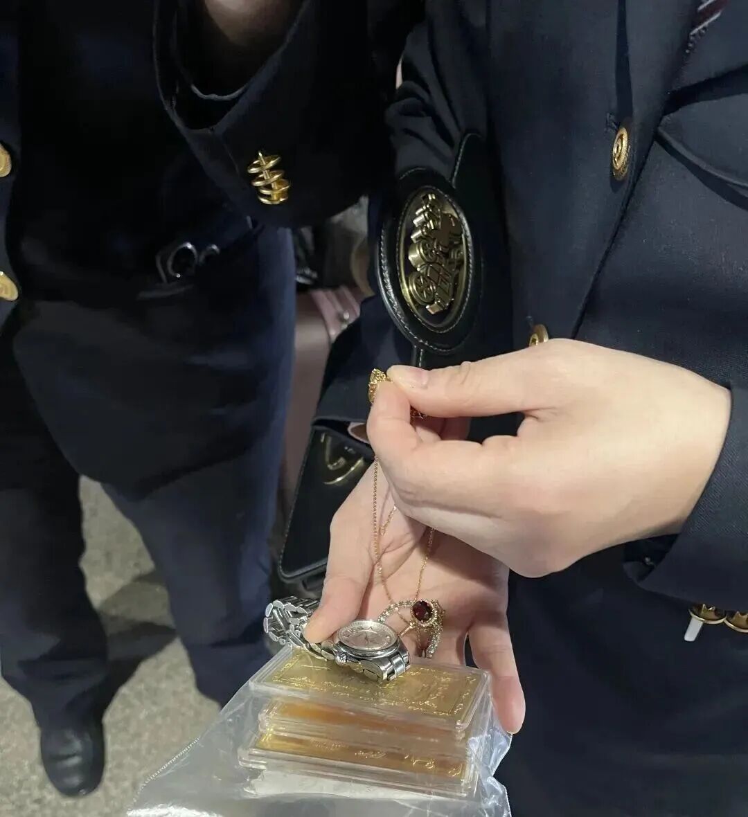 她顿时觉得一阵眩晕,冷静下来后赶紧向站台工作人员求助。荆州站工作人员立即与D2378次列车取得联系,乘务组在行李架上发现了胡女士描述的黑色手提袋。打开后发现,里面果然装着金条、金手链、金项链等金饰。