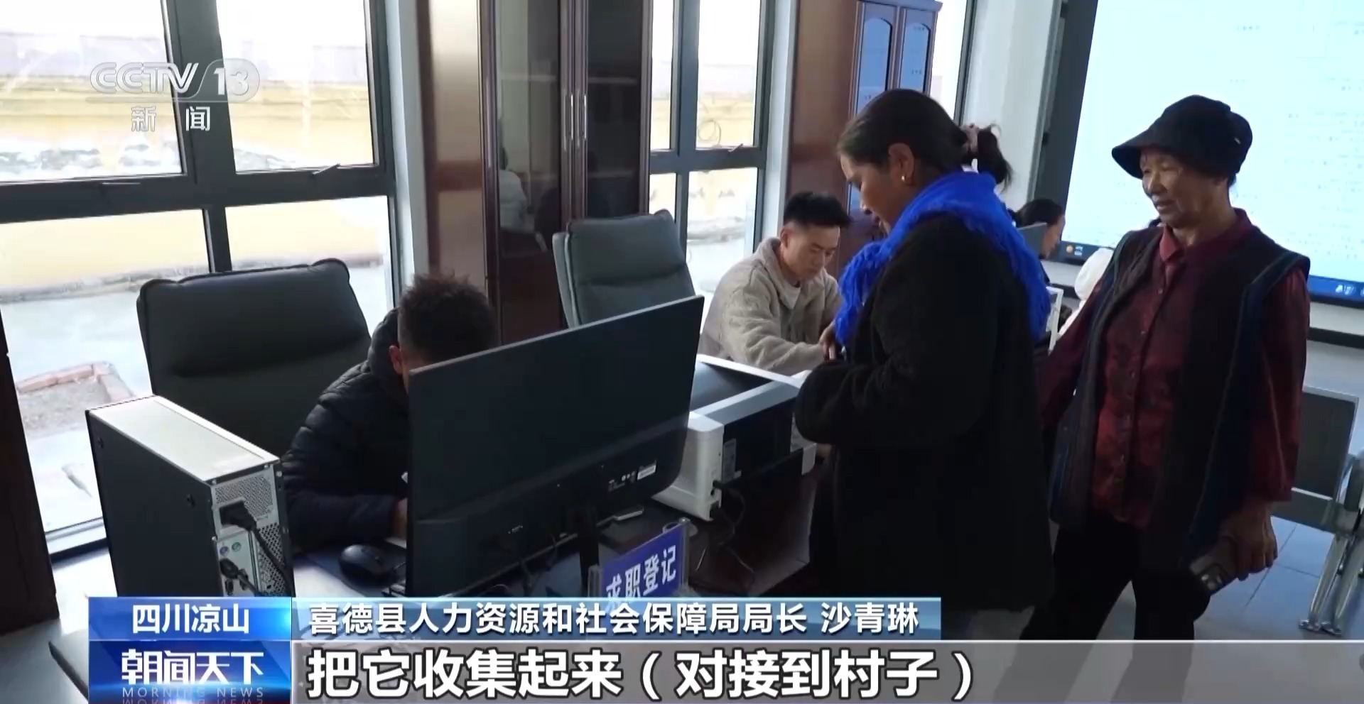 沙青琳:这里是我们城镇版的“幸福里”就业服务社区,通过这个平台,我们把全县的岗位和务工需求信息收集起来,对接到村子,延长务工时间,增加收入。